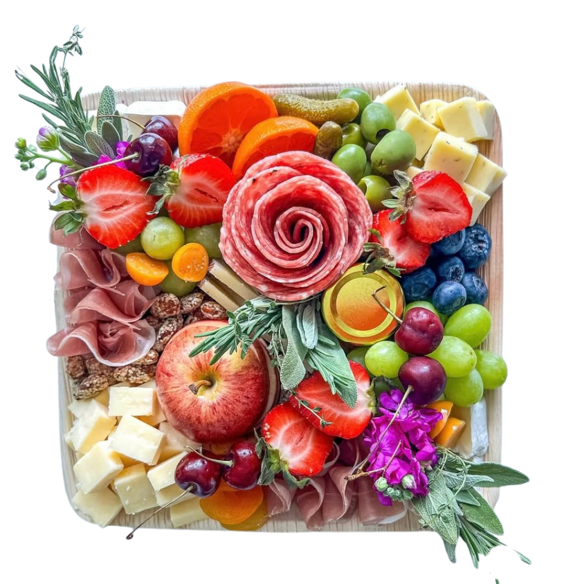 Composé de 2 différentes charcuteries de qualité supérieure et de 2 fromages fins de producteurs locaux. Agrémenté d’une sélection variée de fruits, de noix, d'olives et d'une gelée de pomme afin de satisfaire tous les goûts.